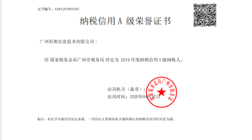 近日,国家税务总局广州市税务局公布了2019年纳税信用评价工作情况,今年会信息技术有限公司被评为“2019年度纳税信用A级纳税人”,并获得《纳税信用A级荣誉证书》!