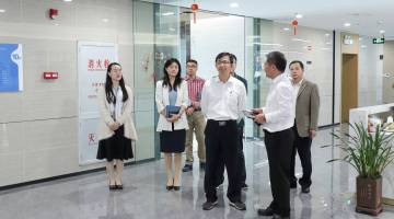 5月10日,广州市科学技术局副局长孙翔、广州市政府办公厅综合七处处长毛善强、广州市科学技术局高新技术处处长韩艳红、广州市政府办公厅综合七处副处长郭萌等一行莅临今年会信息技术有限公司调研。